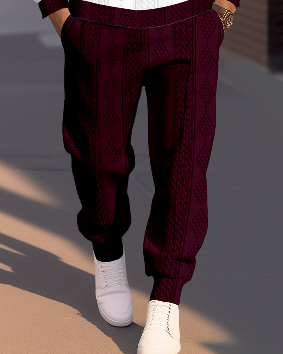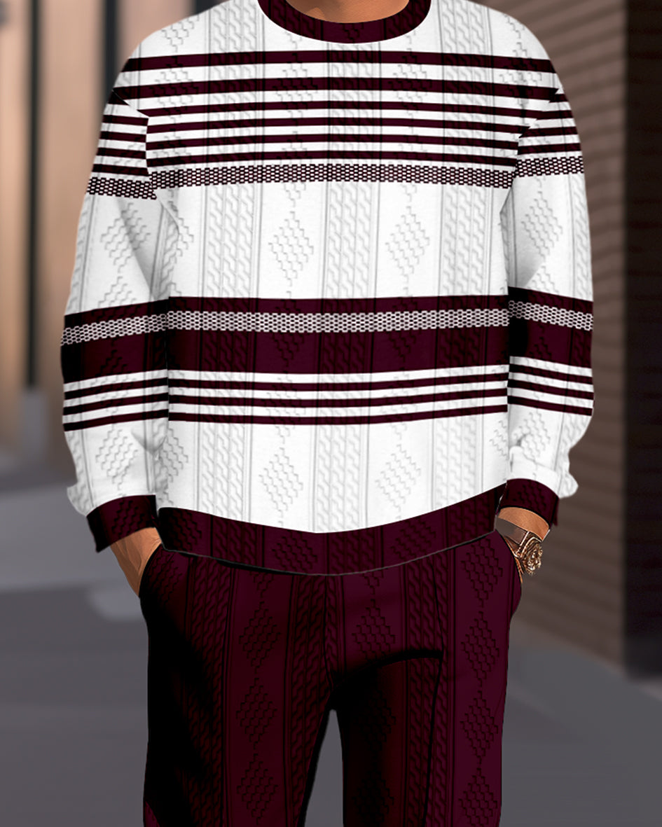 Men's Textured Jacquard Round Neck Casual Sports Set 005